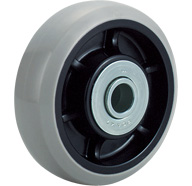 φ100~200 | ホイル部は樹脂製で、鋼板製ホイル仕様よりも軽量です。 深溝ベアリングを使用することにより、車輪の回転が良好になっています。 |